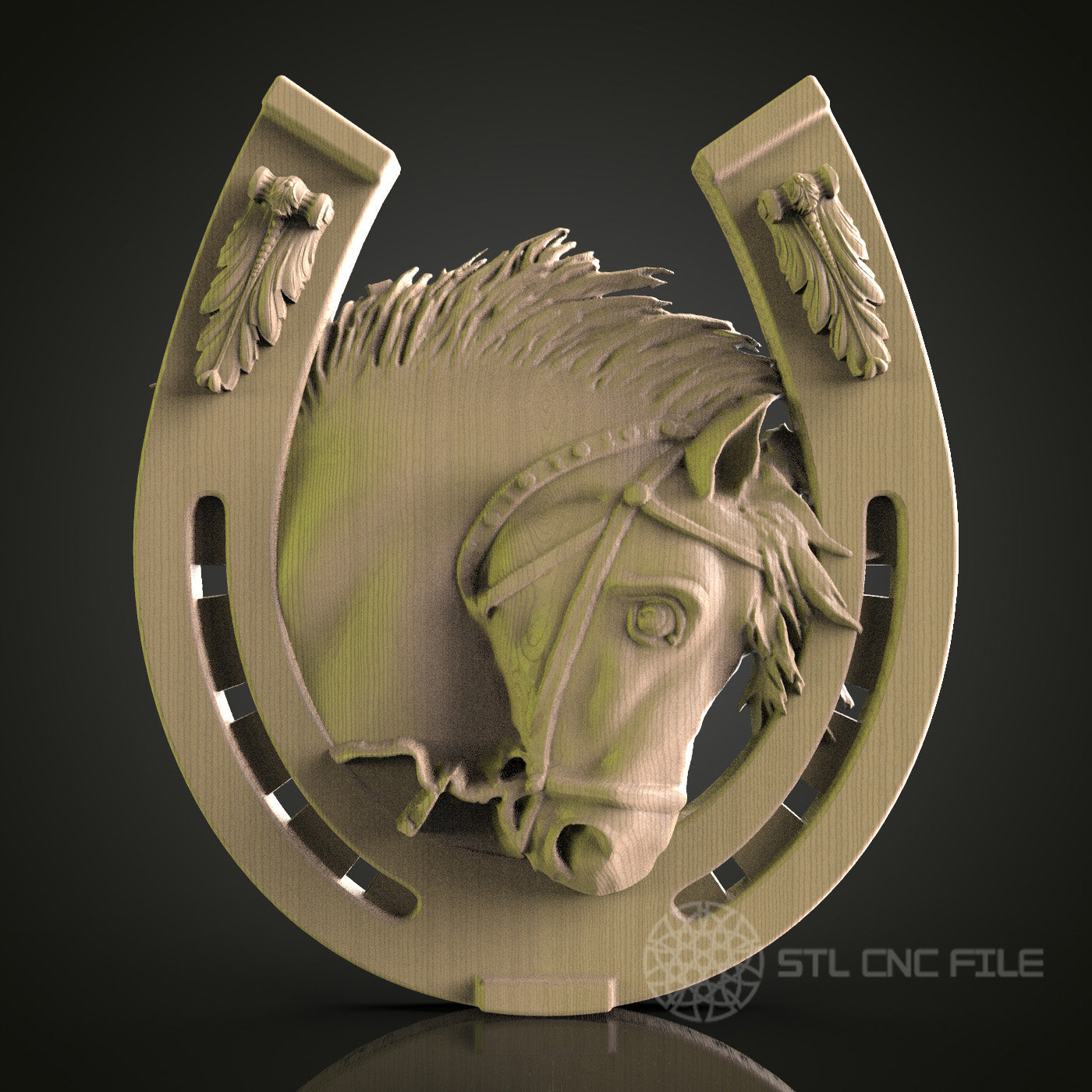 Equestrian Majesty - 3D Printed Horse in Horseshoe, CNC Router File, STL Model, Artcam, Aspire, Equine Wall Decor, Digital Wood Art