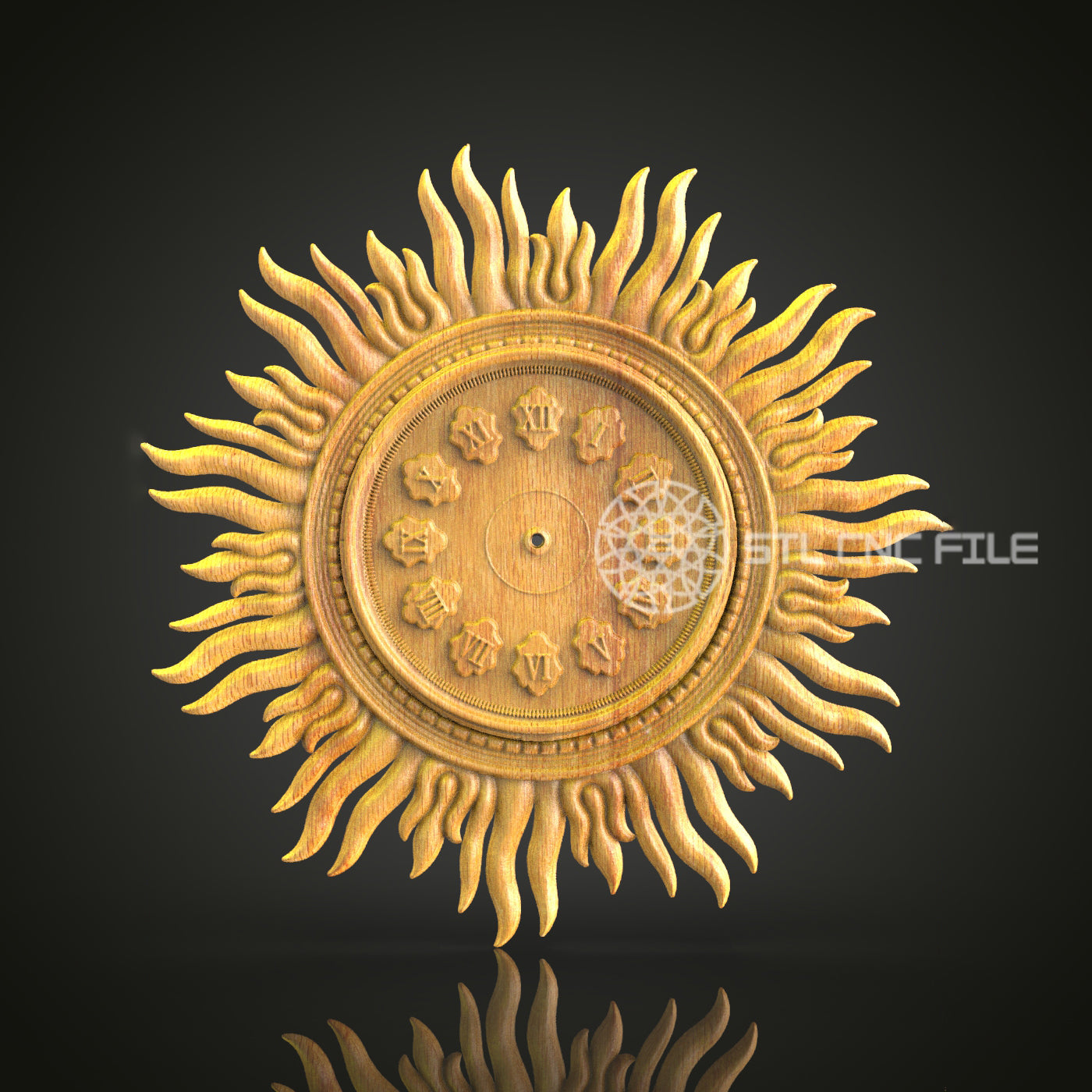 Sunburst Clock 3D Model STL, CNC Engraving File, Artcam Aspire Carving, Woodworking Decor, Wall Art CNC Design