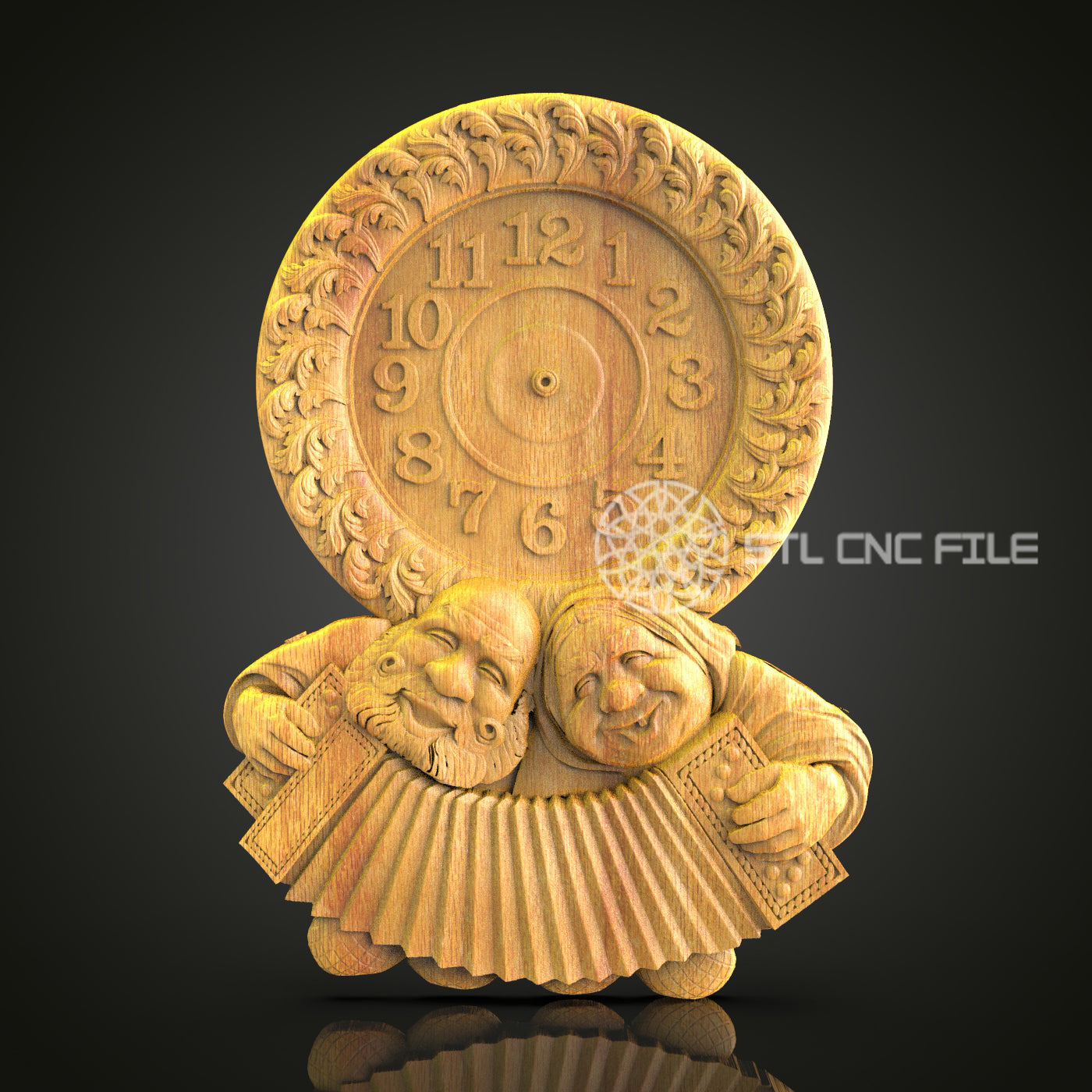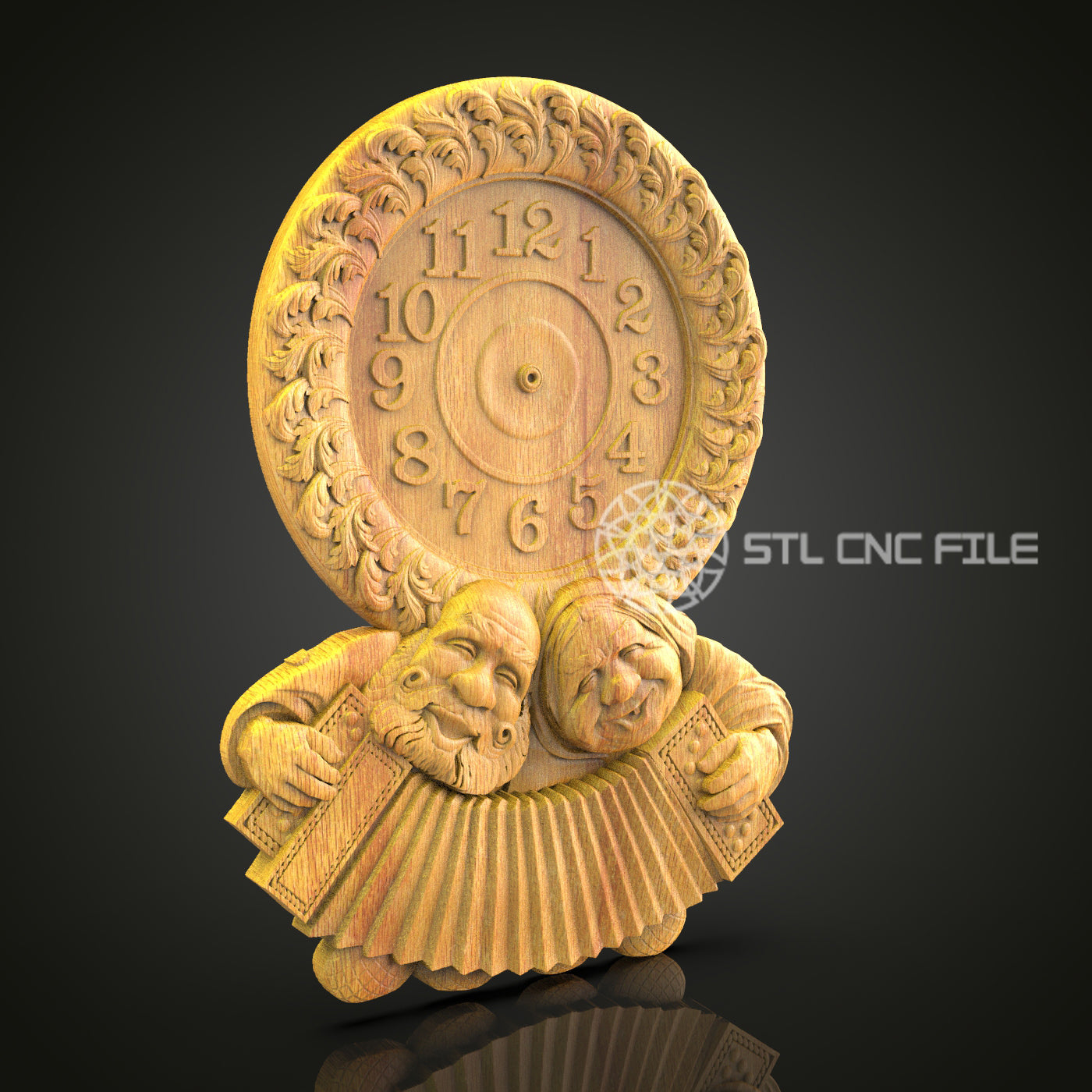 Folklore Duo Clock STL, CNC Engraving File, Artcam Aspire Model, Whimsical Wood Art, Storybook Wall Decor, CNC Router Download