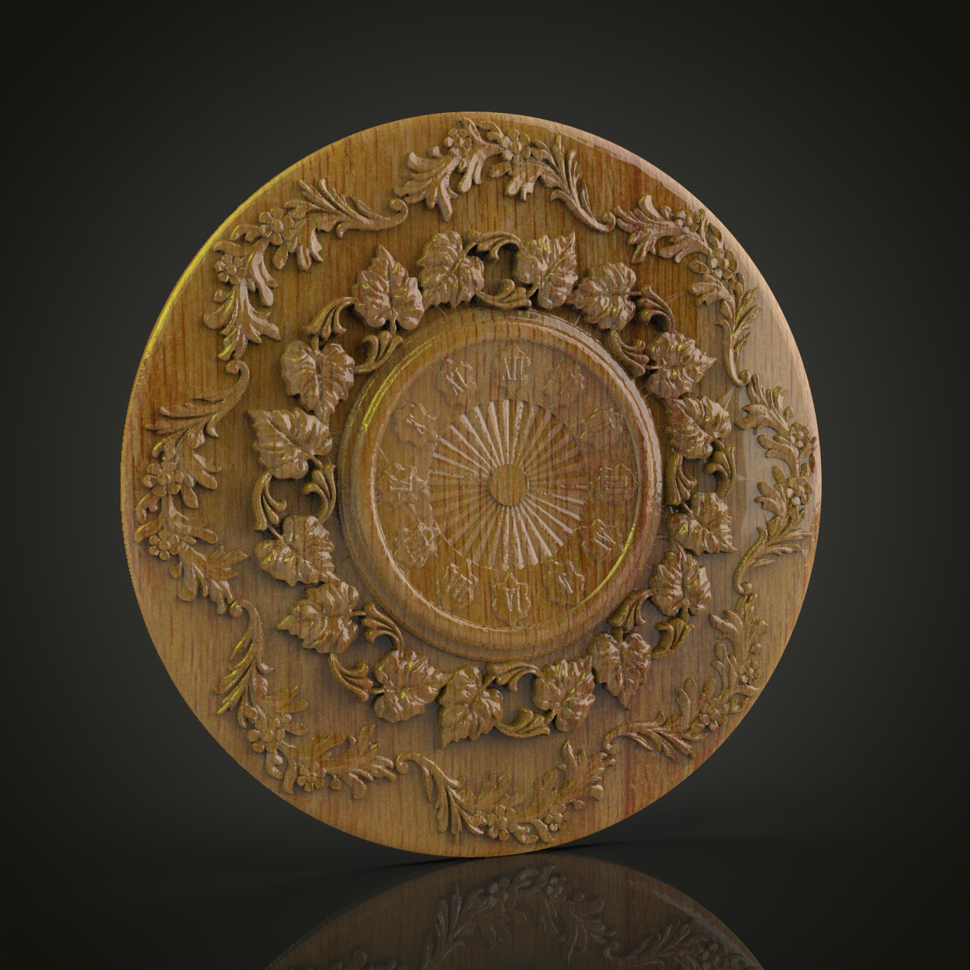 Floral Elegance Clock STL Model, CNC Router File for Ornate Wall Art, Compatible with Artcam and Aspire, Intricate Wood Carving Decor Design