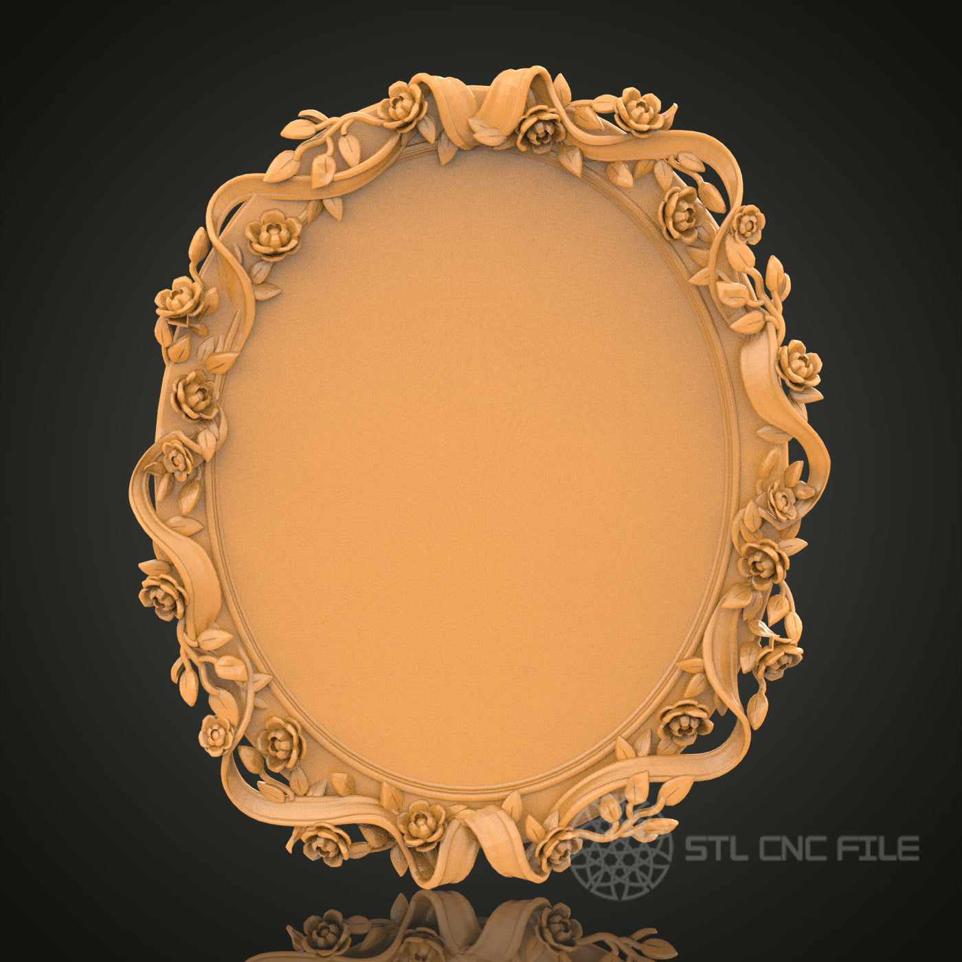 Oval Floral Frame STL Model for CNC Router Engraver, Artcam, Aspire, Wood Art, Wall Decor, 3D Printer