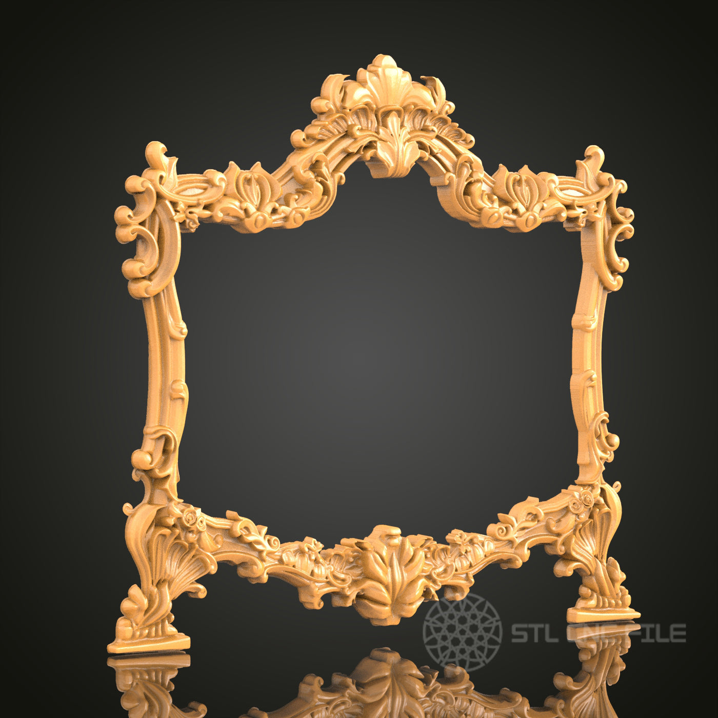 "Archway frame, ornate scrollwork, CNC design, 3D printing, classical decor, STL model, floral design, digital download, luxurious frame, detailed art, home decor, architectural frame, craftsmanship"
