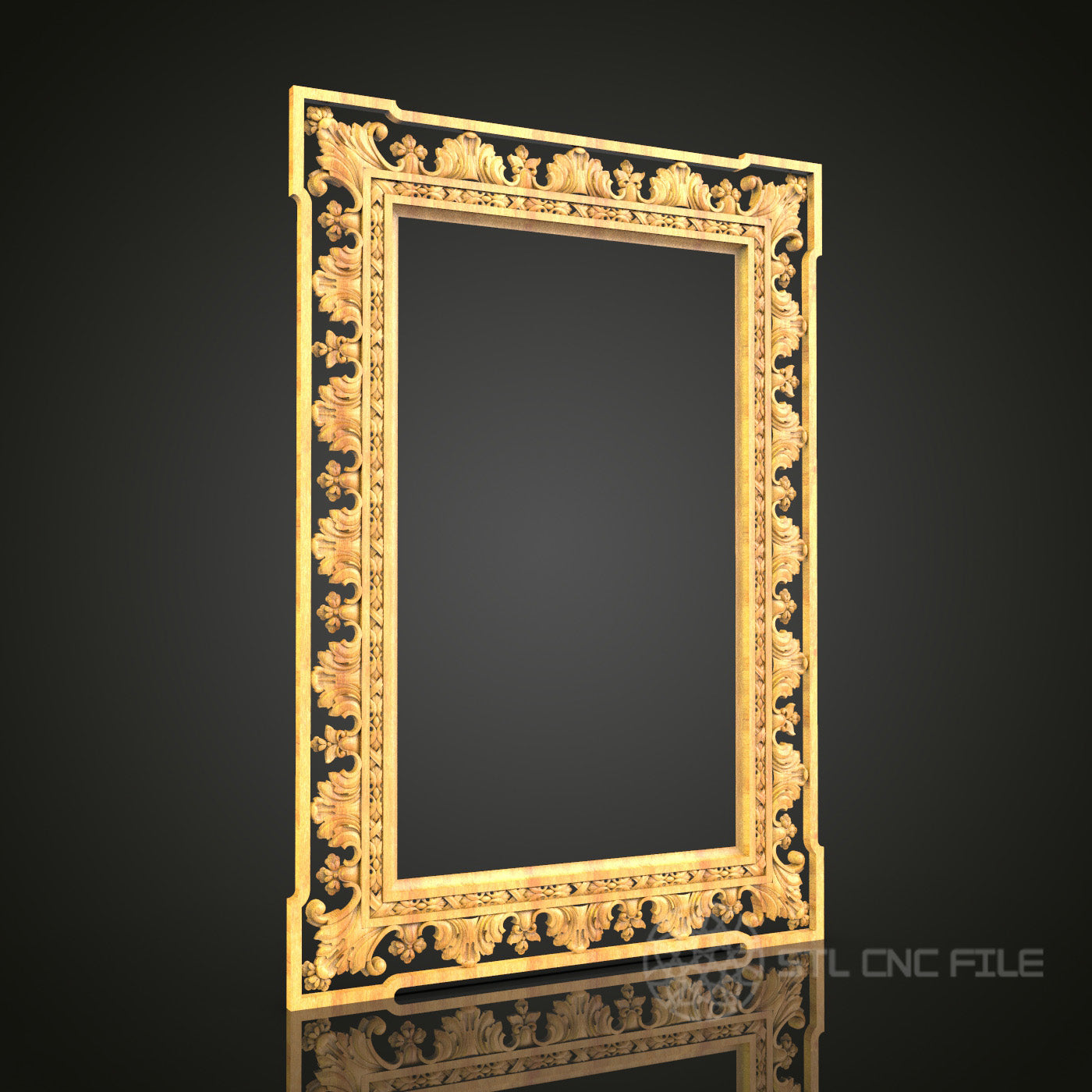 Baroque-Style Mirror Frame STL Model for CNC Router - Luxurious Wood Art Decor, Compatible with Artcam, Aspire