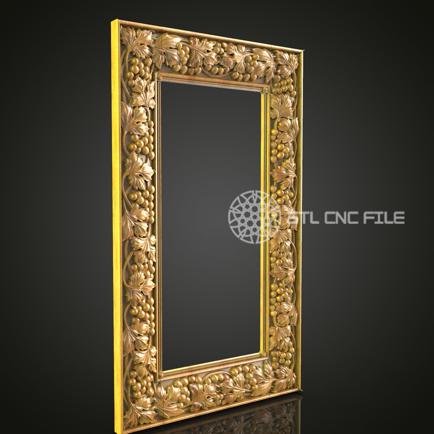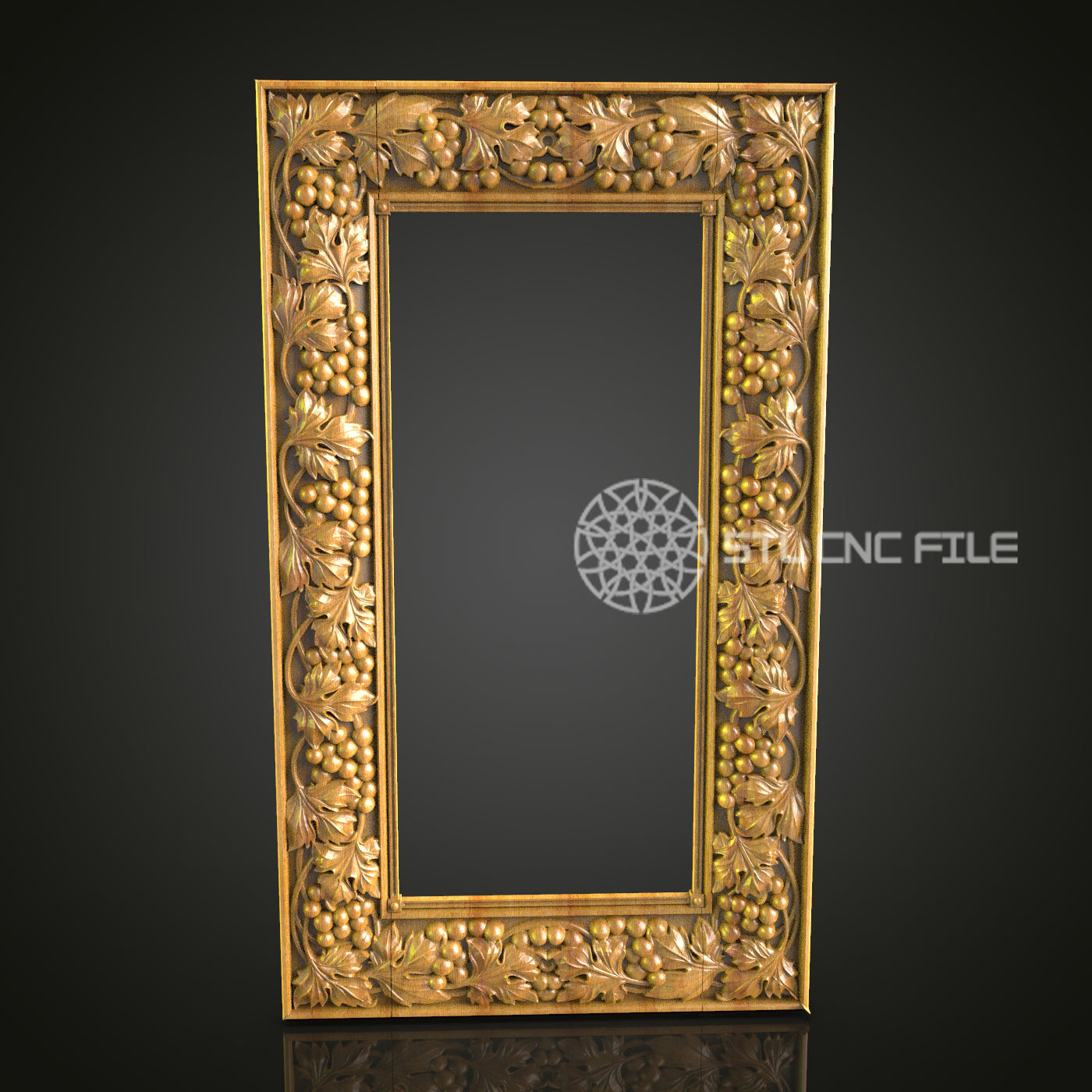 Nature-Inspired Vertical Mirror Frame STL File, Exquisite Vine and Berry Design for CNC Router