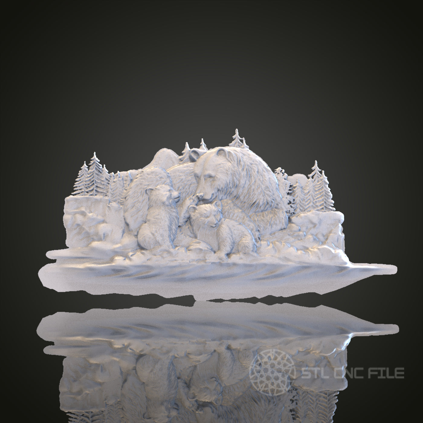Bear Family Relief STL Model for CNC Router Engraver, Artcam, Aspire, Wood, Wall Decor