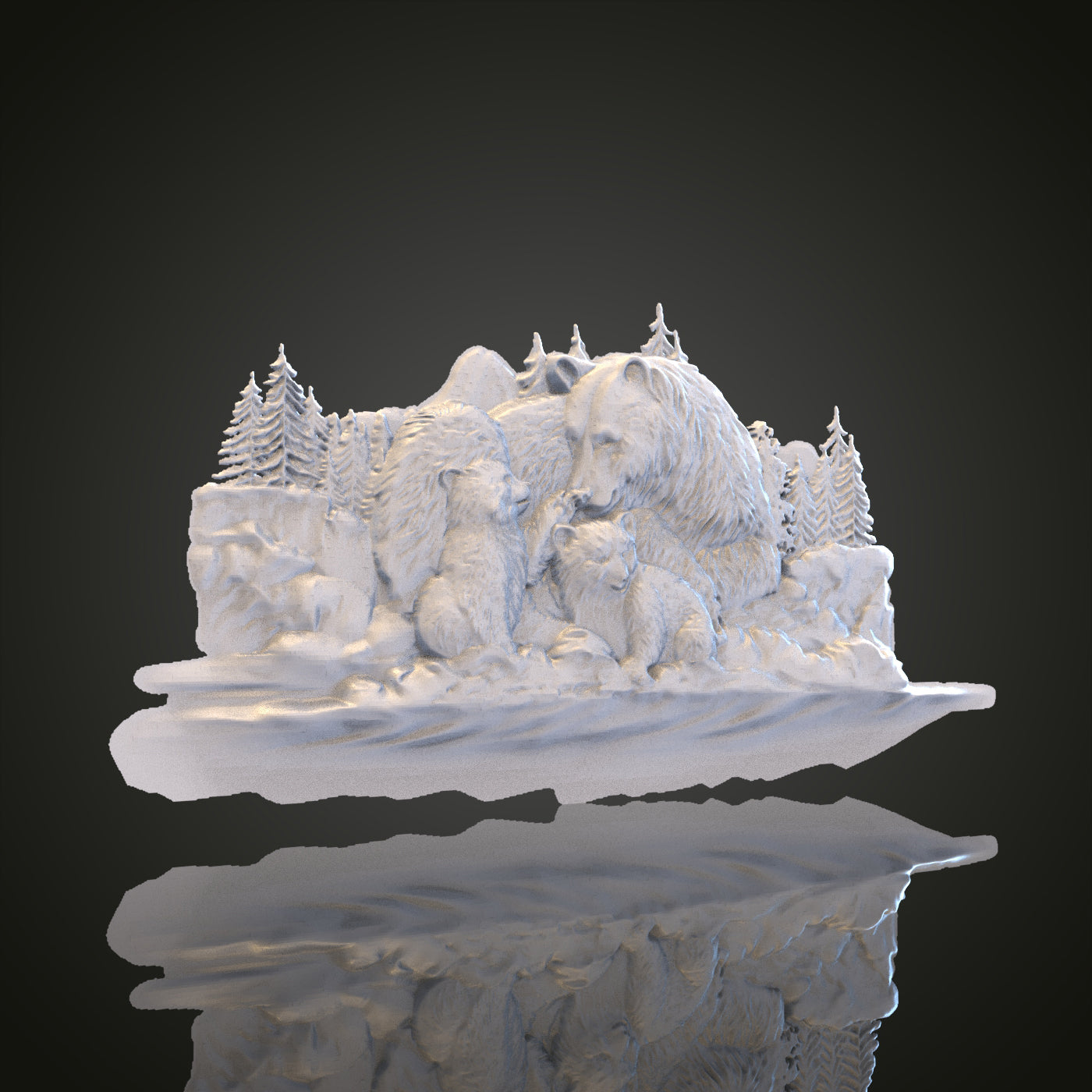 Bear, Family, Relief, CNC, STL, Wood, Art, 3D, Printer, Wall, Decor, Aspire, Artcam