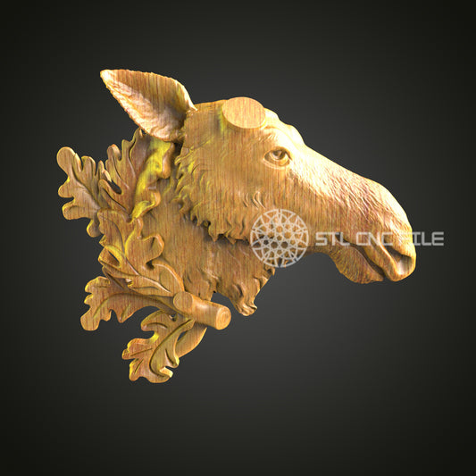 Moose Oak Wood Art - CNC Router STL Model, Wall Decor, Wood 3D Printing, Artcam Aspire Files