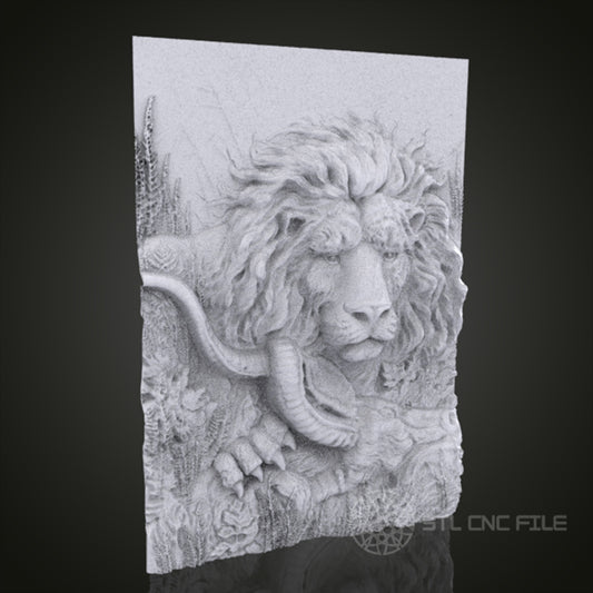 Lion Relief Art STL Model for CNC Router Engraver - Wood Art Wall Decor - 3D Printer File for Artcam and Aspire