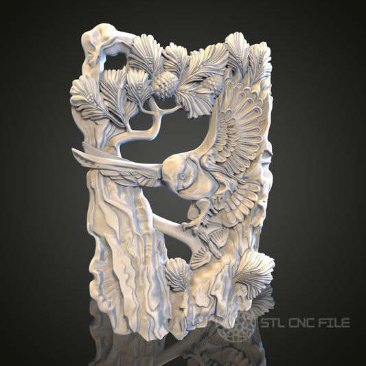 Intricate Bird and Tree Relief STL Model for CNC and 3D Printing, Artcam, Aspire, Wall Decor