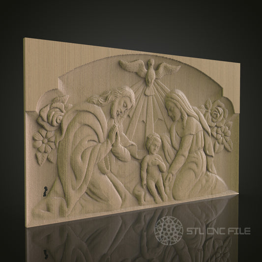 Religious Family Scene Relief Art STL Model for CNC Router Engraver - Wood Art Wall Decor - 3D Printer File for Artcam and Aspire