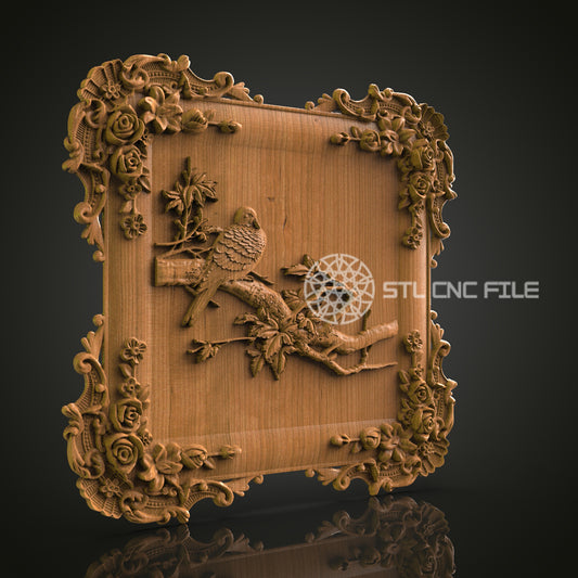 Intricate 3D Carved Bird on Branch Frame STL File for CNC and 3D Printing - Ornate Relief Art, Decorative Wall Decor, Digital Download
