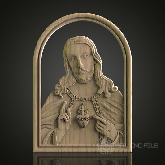 STL Model of Jesus with Sacred Heart, CNC Router Engraver, Artcam, Aspire, CNC files, Wood Art, Wall Decor, 3D Printer