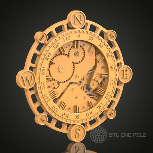 Compass Clock - STL Model for CNC Router and 3D Printing - Compatible with Artcam, Aspire