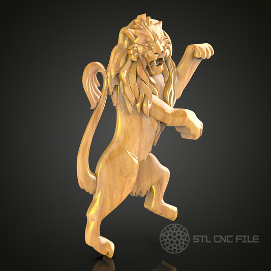Majestic 3D Carved Lion with Heraldic Elements STL File for CNC and 3D Printing - Ornate Relief Art, Wall Decor, Digital Download