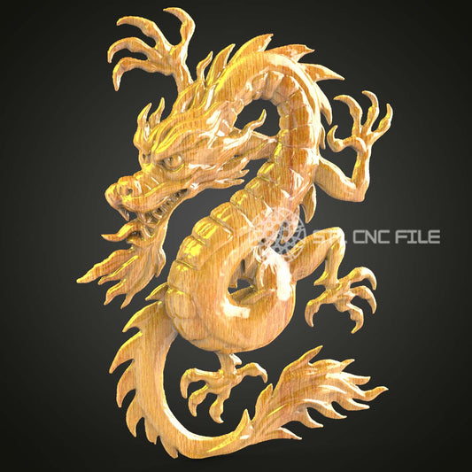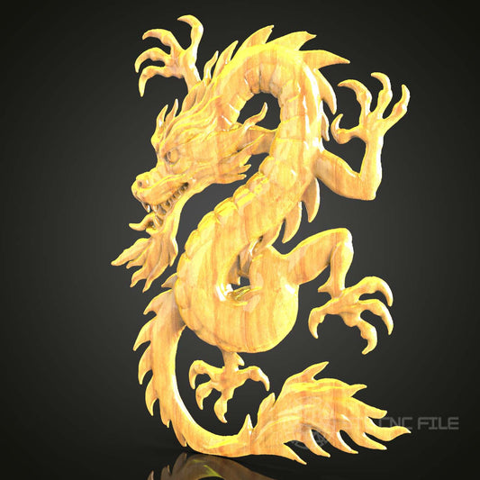 Fierce Eastern Dragon STL File for CNC, Dynamic Wood Carving Art, Artcam Aspire Compatible, 3D Model Engraving