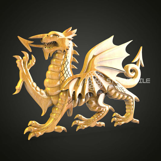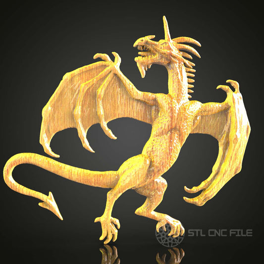 Carved Wooden Dragon STL File, CNC Router Ready, Artcam Aspire Digital Art, Woodworking CNC Design, Home Wall Decor, 3D Model
