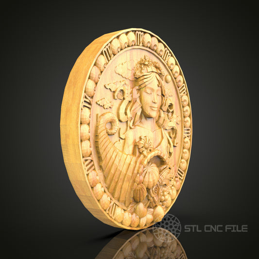 3D Clock Crest STL Model for CNC, Wood Carving Wall Art, Ornamental Timepiece, Router Engraver File