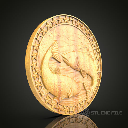Pisces Zodiac Wood Carving - CNC Engraved Wall Art, Fish Symbol Decor, Unique Astrological Gift
