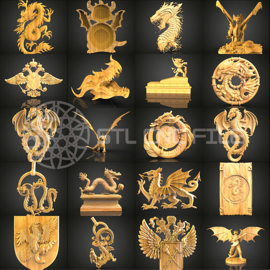 Ultimate 56-Piece Dragon Pack STL Models for CNC, Artcam Aspire Router Files, Mythical Dragon Wood Art Collection, Wall Decor CNC Engraving