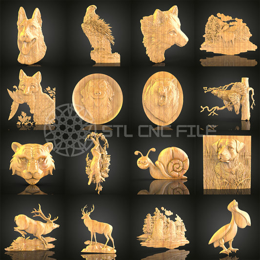 118-Piece Wildlife Collection STL Models Pack - CNC Router Files for Artcam, Aspire, Wood Art & Wall Decor