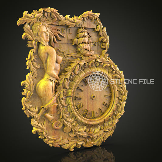 Baroque 3D STL Clock Model - CNC Router Files, Mythical Sea Art, Elegant Wall Decor, Wood Engraving