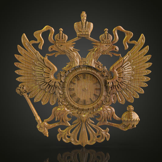 Regal Eagle Crest Clock, STL Model for CNC Engraving, Artcam and Aspire Compatible, Wood Wall Art