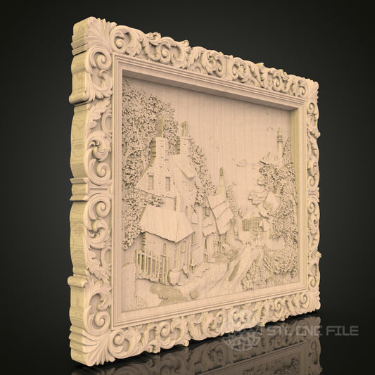 Victorian Village Scene 3D CNC Router Engraver File, STL Model for Artcam Aspire, Wood Wall Decor
