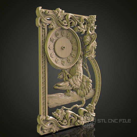 Elegant Bird Clock Wall Decor - STL Model for CNC Router, 3D Printer - Artcam, Aspire Compatible